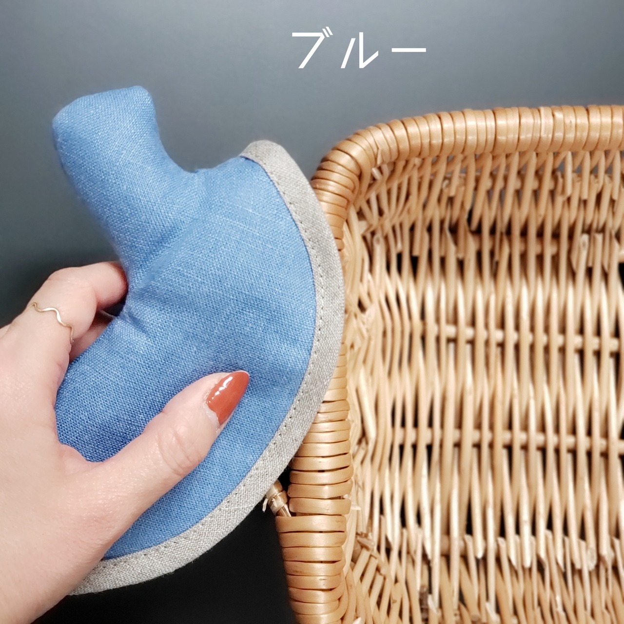 リネン100%、ナチュラルとブルーの二種類ございます。。