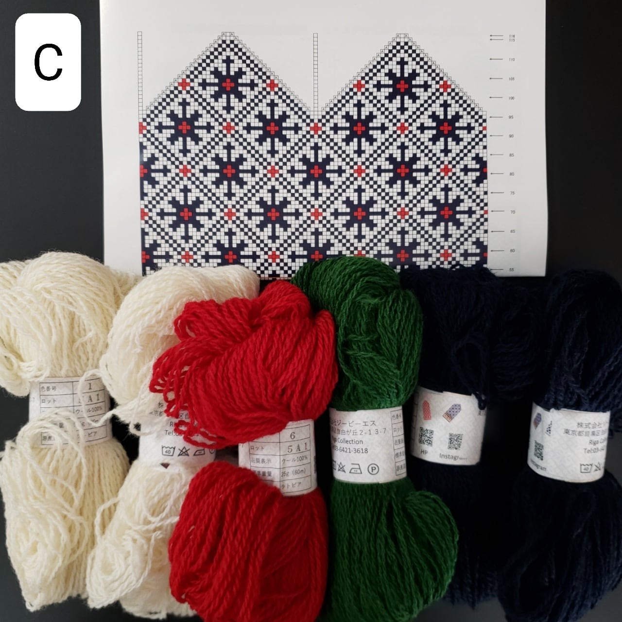 内容品:編み図、ラトビア産毛糸(ウール)